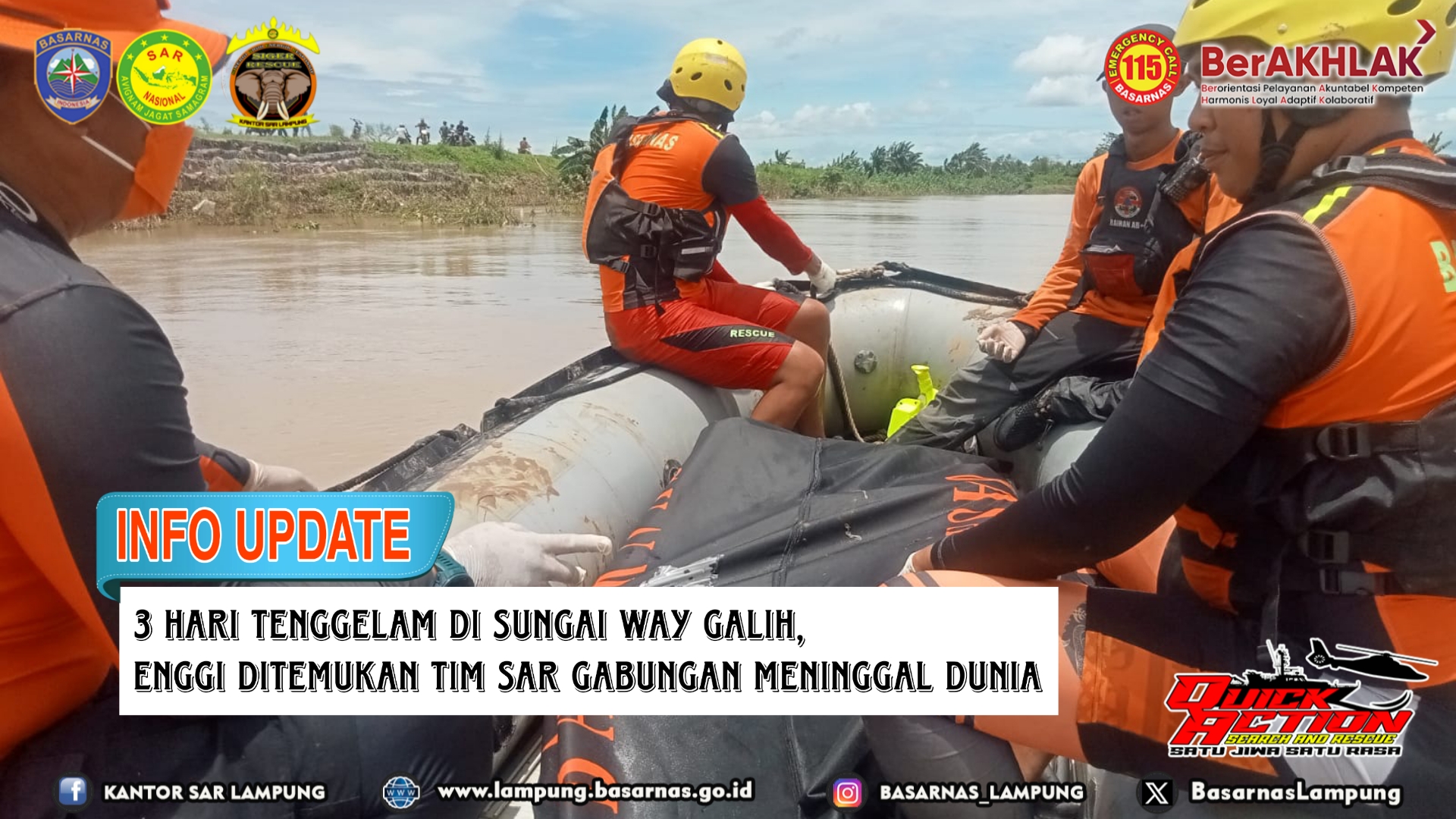 3 Hari Tenggelam di Sungai Way Galih, Enggi Ditemukan Tim SAR Gabungan Meninggal Dunia