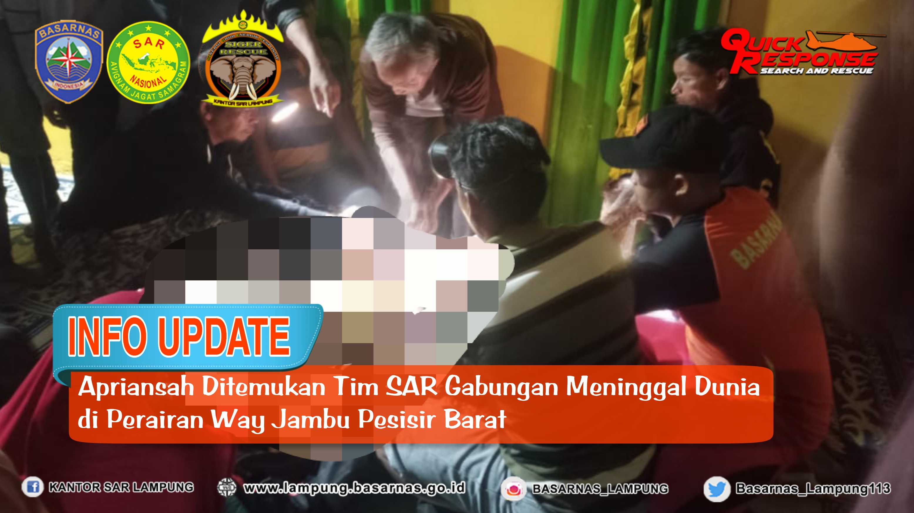 Apriansah Ditemukan Tim SAR Gabungan Meninggal Dunia di Perairan Pantai Way Jambu Pesisir Barat