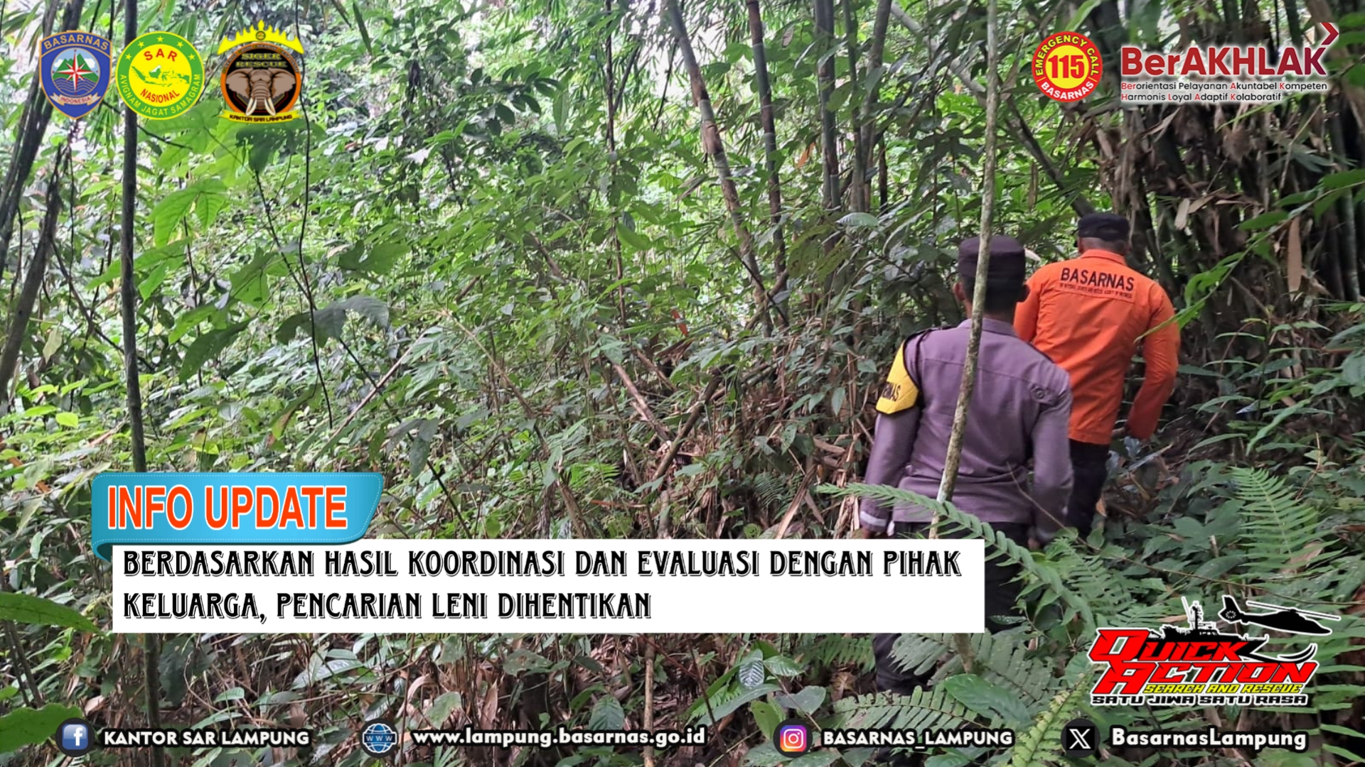 Berdasarkan Hasil Koordinasi dan Evaluasi dengan Pihak Keluarga, Pencarian Leni Dihentikan