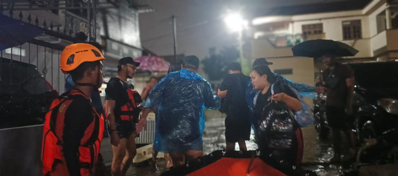 KANTOR PENCARIAN DAN PERTOLONGAN LAMPUNG TURUNKAN TIM UNTUK EVAKUASI WARGA TERDAMPAK BANJIR DI BANDAR LAMPUNG