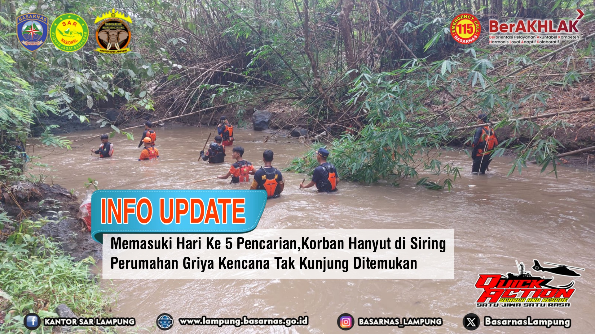 Memasuki Hari Ke 5 Pencarian, Korban Hanyut di Siring Perumahan Griya Kencana Tak Kunjung Ditemukan