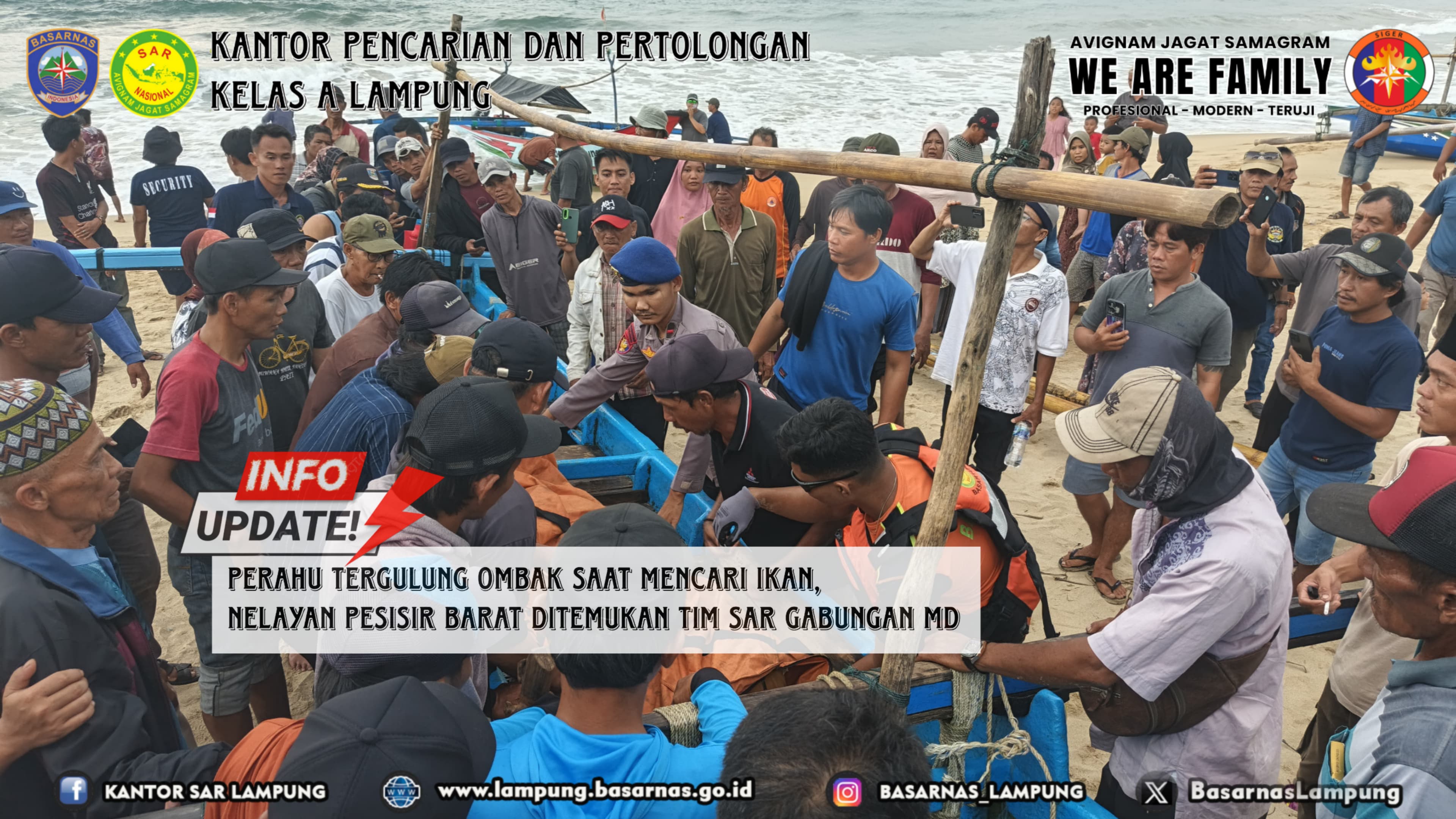 Pesisir Barat – Akibat perahu tergulung ombak, Tim SAR Gabungan temukan Dedi Supriyadi (23), nelayan asal Sumber Agung Kec. Ngambur Kab. Pesisir Barat dalam keadaan meninggal dunia pada Rabu (07/05/2025).