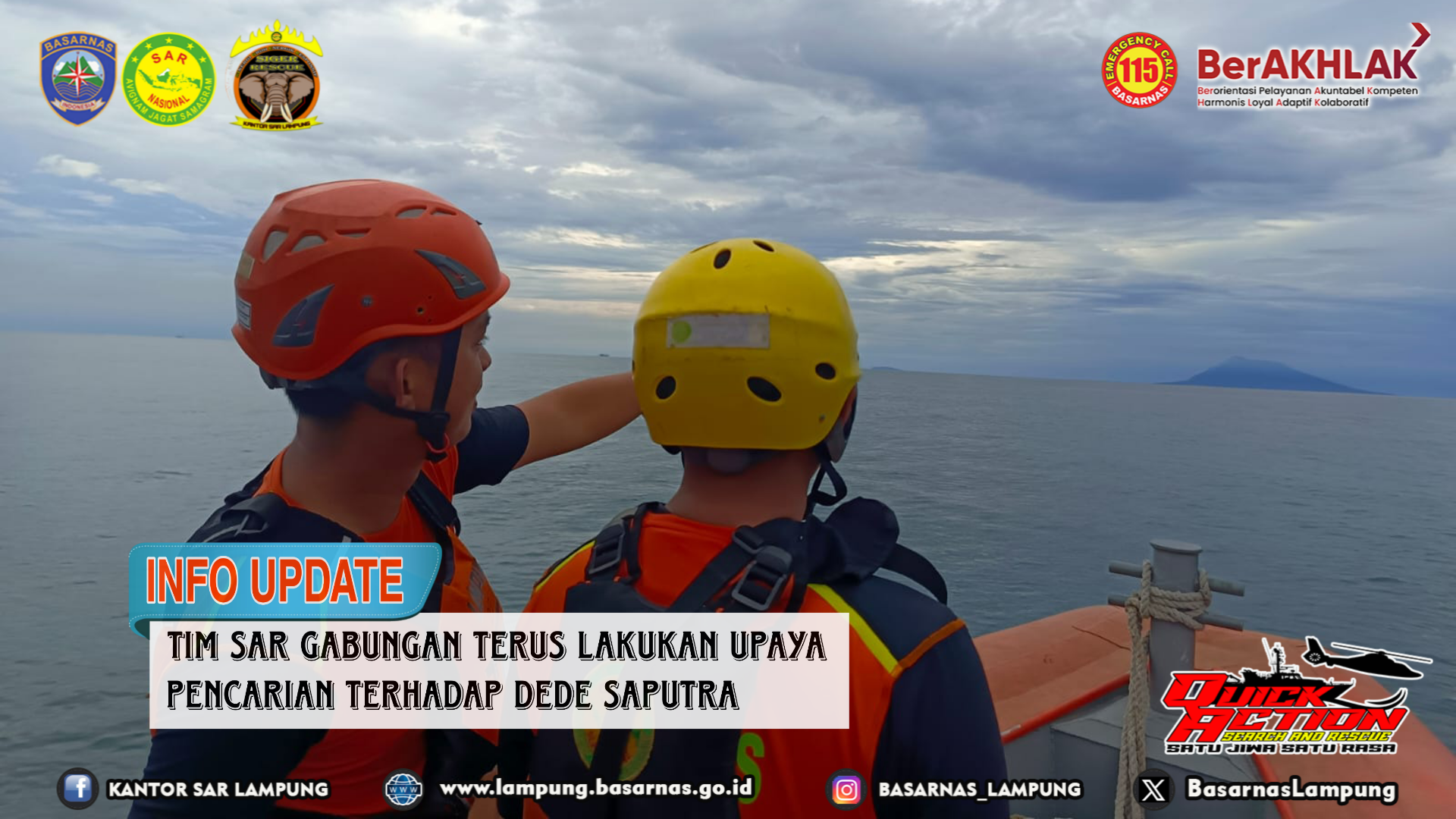 Tim SAR Gabungan memulai pencarian mulai pukul 08.00 WIB sesuai dengan rencana operasi yang telah dibuat dengan formasi 3 SRU dengan memperluas area pencarian. SRU I menggunakan RIB 03 Basarnas Lampung melaksanakan pencarian radius 16 Nm hingga ke perairan P. Sangiang.