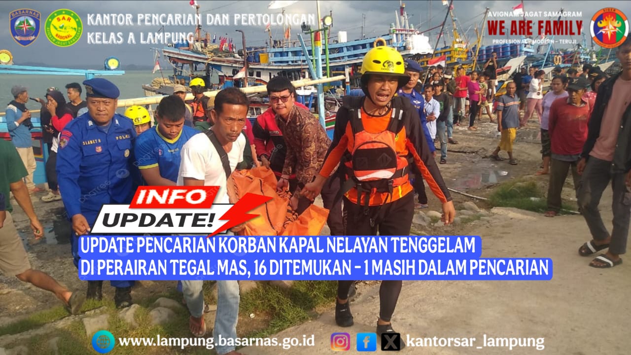 UPDATE PENCARIAN KORBAN KAPAL NELAYAN TENGGELAM DI PERAIRAN TEGAL MAS, 16 DITEMUKAN – 1 MASIH DALAM PENCARIAN